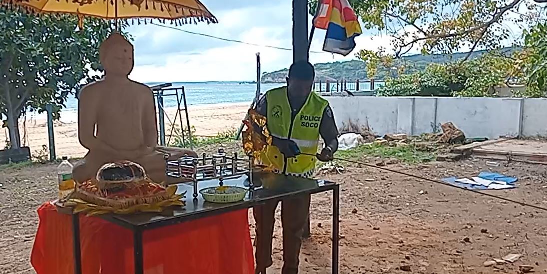 திருகோணமலை கடற்கரை பகுதிக்கு நேற்று (17) சென்ற தடயவியல் பொலிஸார் புத்தர் சிலை விவகாரம், அதன் சேத நிலைவரம் தொடர்பில் கண்டறிய, கள ஆய்வு நடவடிக்கையில் ஈடுபட்டனர்.