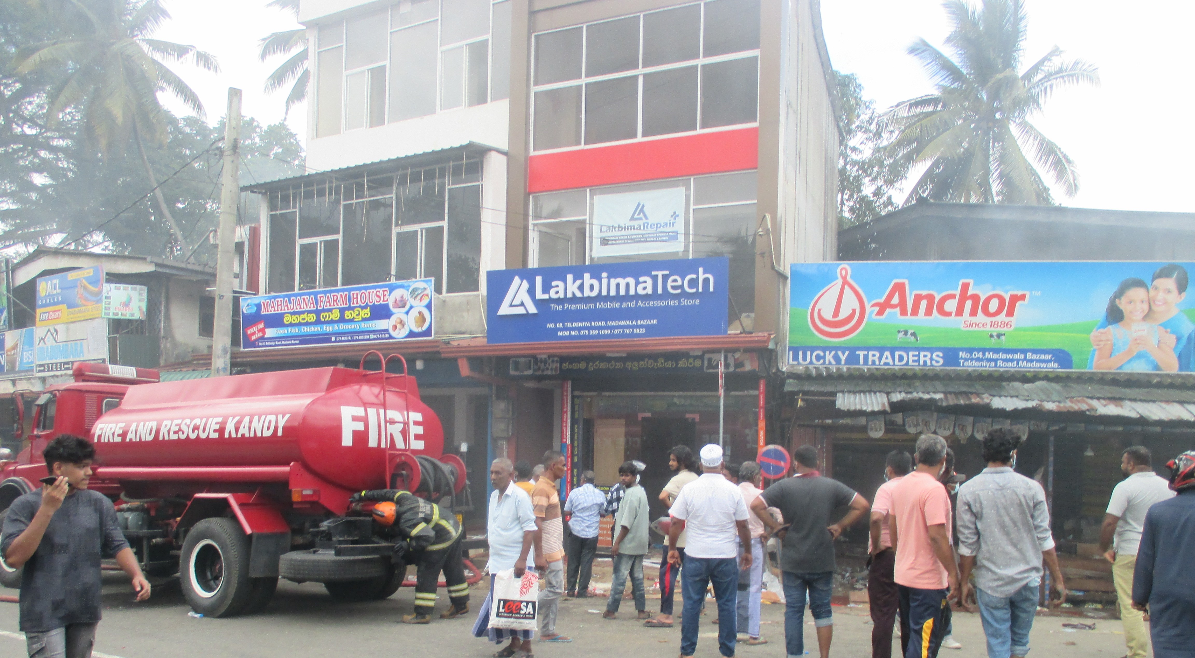 கண்டி, மடவளை நகரத்தில் கடைத் தொகுதி ஒன்று தீப்பிடித்து, இரண்டு கடைகள் முற்றாக பாதிக்கப்பட்டதுடன், மற்றும் மூன்று கடைகள் பகுதி அளவில் பாதிக்கப்பட்டுள்ளன.