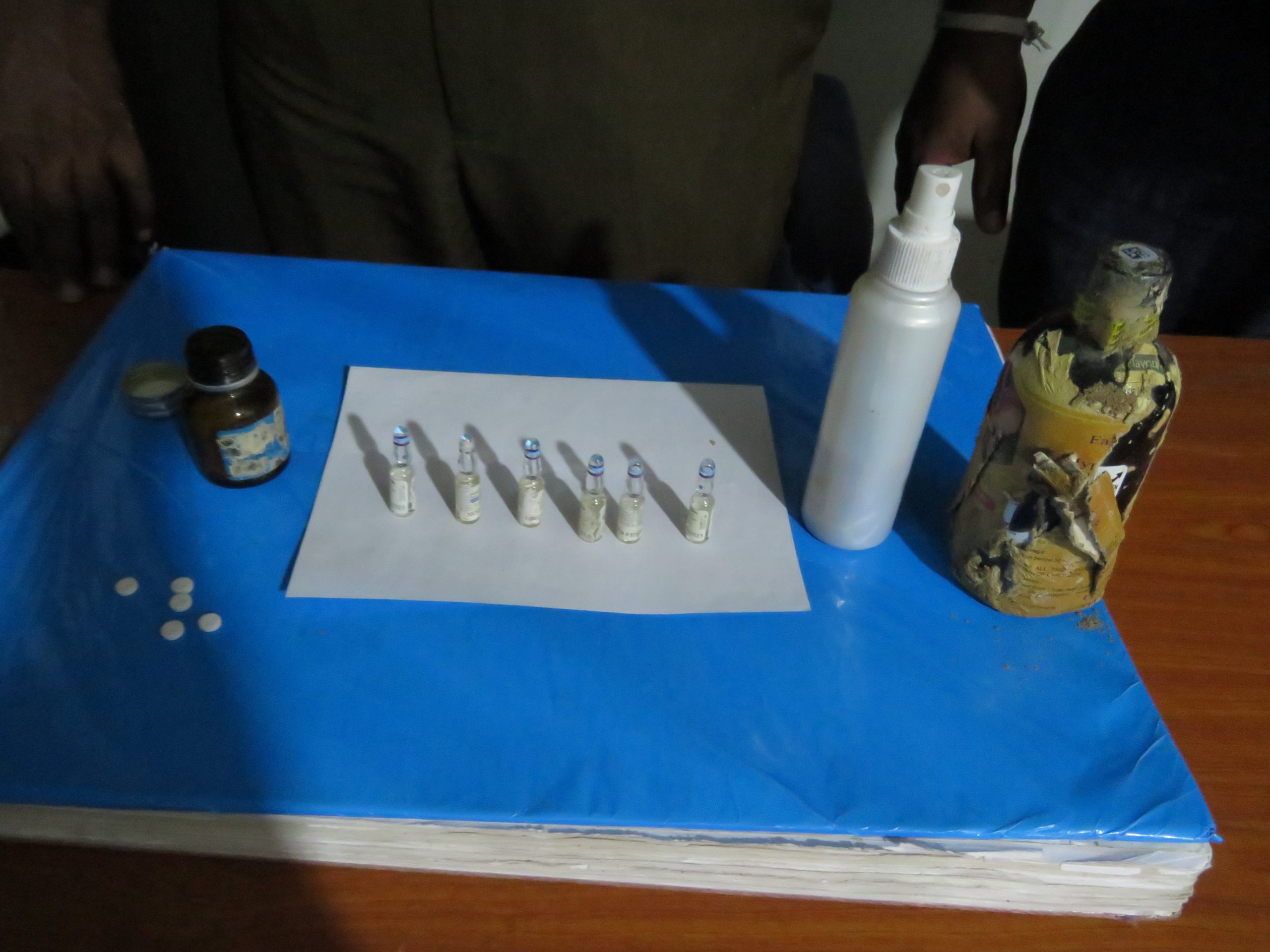 இதையடுத்து நேற்று வியாழக்கிழமை இரவு கொள்ளையர்களின் காஞ்சிரம்குடா வீட்டை முற்றுகையிட்டு நிலத்தில் இரண்டு அடி ஆழத்தில் பாதுகாப்பாக பொலித்தீன் பைகளில் சுற்றி வைக்கப்பட்டிருந்த வைத்தியசாலைகளில் சத்திர சிகிச்சையின் போது பாவிக்கப்படும் 6 மயக்க மருந்துகளை கொண்ட போத்தல் மற்றும் மயக்க மாத்திரைகள், மருந்துகள் மீட்டனர்.