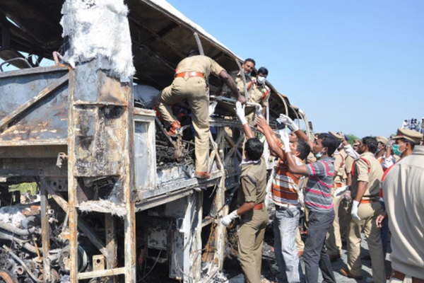 தெலுங்கானா மாநிலம் ஐதராபாத்தில் இருந்து கர்நாடக மாநிலம் பெங்களூருவுக்கு வியாழக்கிழமை (23) இரவு பஸ் புறப்பட்டுள்ளது. இந்த பேருந்தில் 42 பேர் பயணித்துள்ளனர்.