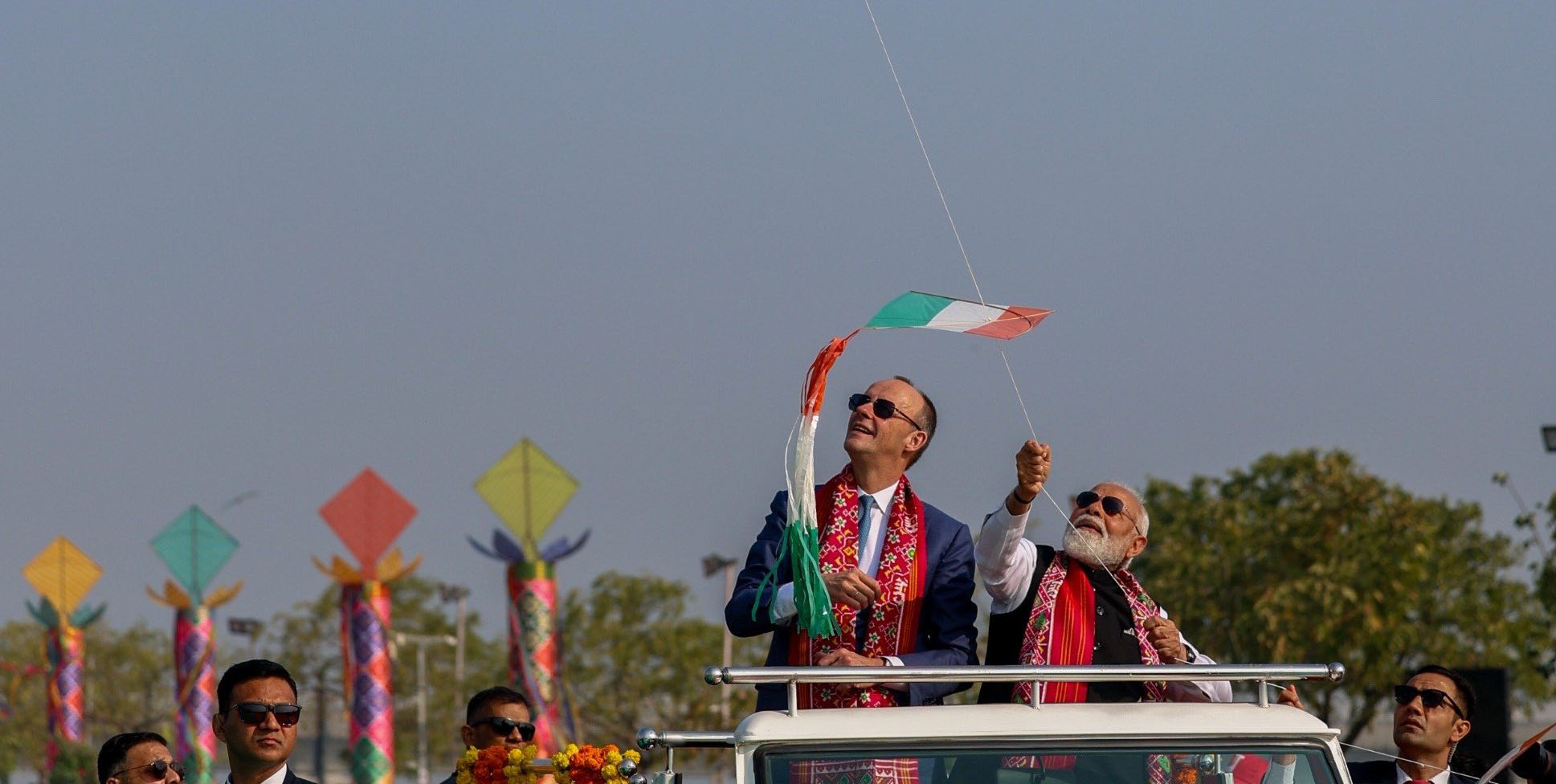 இந்தியாவின், குஜராத் மாநிலம், அகமதாபாத்தில் சா்வதேச பட்டத் திருவிழாவை இந்திய பிரதமர் நரேந்திர மோடியும், ஜேர்மனி பிரதமர் ஃப்ரீட்ரிக் மொ்ஸும் இணைந்து ஆரம்பித்து வைத்தனர்.
