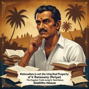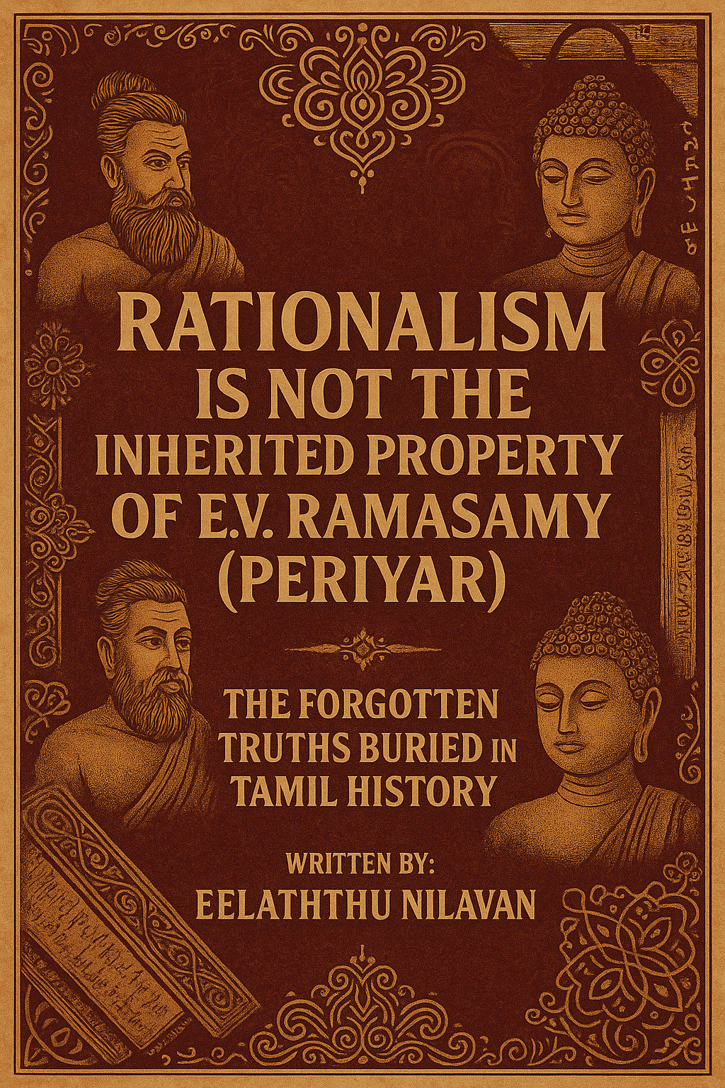 ஏழு தசாப்தங்களாக, தமிழ் சமூகத்தில் ஒரு விஷமான கட்டுக்கதை முறையாக பரப்பப்பட்டு வருகிறது: ஈ.வே. ராமசாமி (பெரியார்) மட்டுமே தமிழ் பகுத்தறிவு சிந்தனையின் உரிமையாளர், ஆசான், முன்னோடி என்று. இந்தப் பொய்ம்மையை “முற்போக்கான சிந்தனையாளர்கள்” என்று சொல்லிக்கொள்பவர்கள் திணித்தாலும், உண்மையில் அவர்கள் தமிழரின் பல நூற்றாண்டுகால தத்துவப் படைப்புகளை அழித்துவிட்டார்கள்.