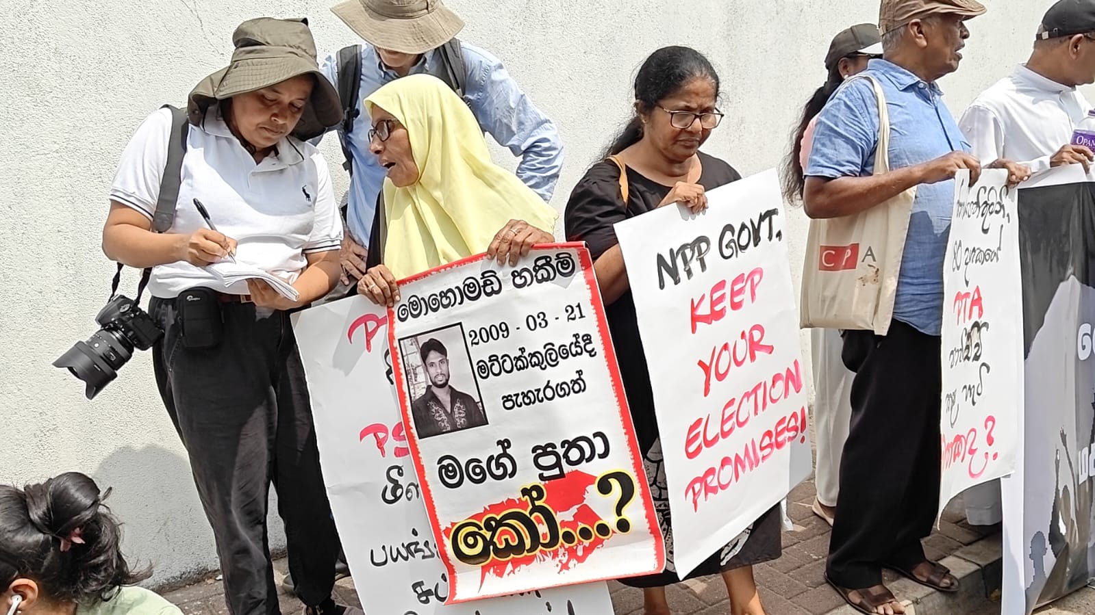 2009ஆம் ஆண்டு மட்டக்குளிப் பகுதியில் கடத்தப்பட்டு காணாமல் ஆக்கப்பட்ட ‘முகமது ஹக்கிம்’ என்ற இளைஞனின் தாயார், தனது மகனுக்கு என்ன நடந்தது என்ற உண்மையைக் கோரி ஏந்தியிருந்த பதாகை காண்போரை நெகிழச் செய்தது.