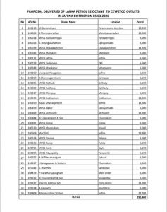 இன்று வியாழக்கிழமை (05.03.2026) யாழ். மாவட்டத்திலுள்ள பெற்றோலியக் கூட்டுத்தாபனத்தின் 34 எரிபொருள் நிரப்பு நிலையங்களுக்கு 290,400 லீற்றர் பெற்றோலும், 19 எரிபொருள் நிரப்பு நிலையங்களுக்கு 158,400 லீற்றர் மண்ணெண்ணையும் விநியோகிக்கப்படவுள்ளதாக யாழ்.மாவட்டச் செயலகத் தரப்புத் தகவல்கள் தெரிவித்துள்ளன.