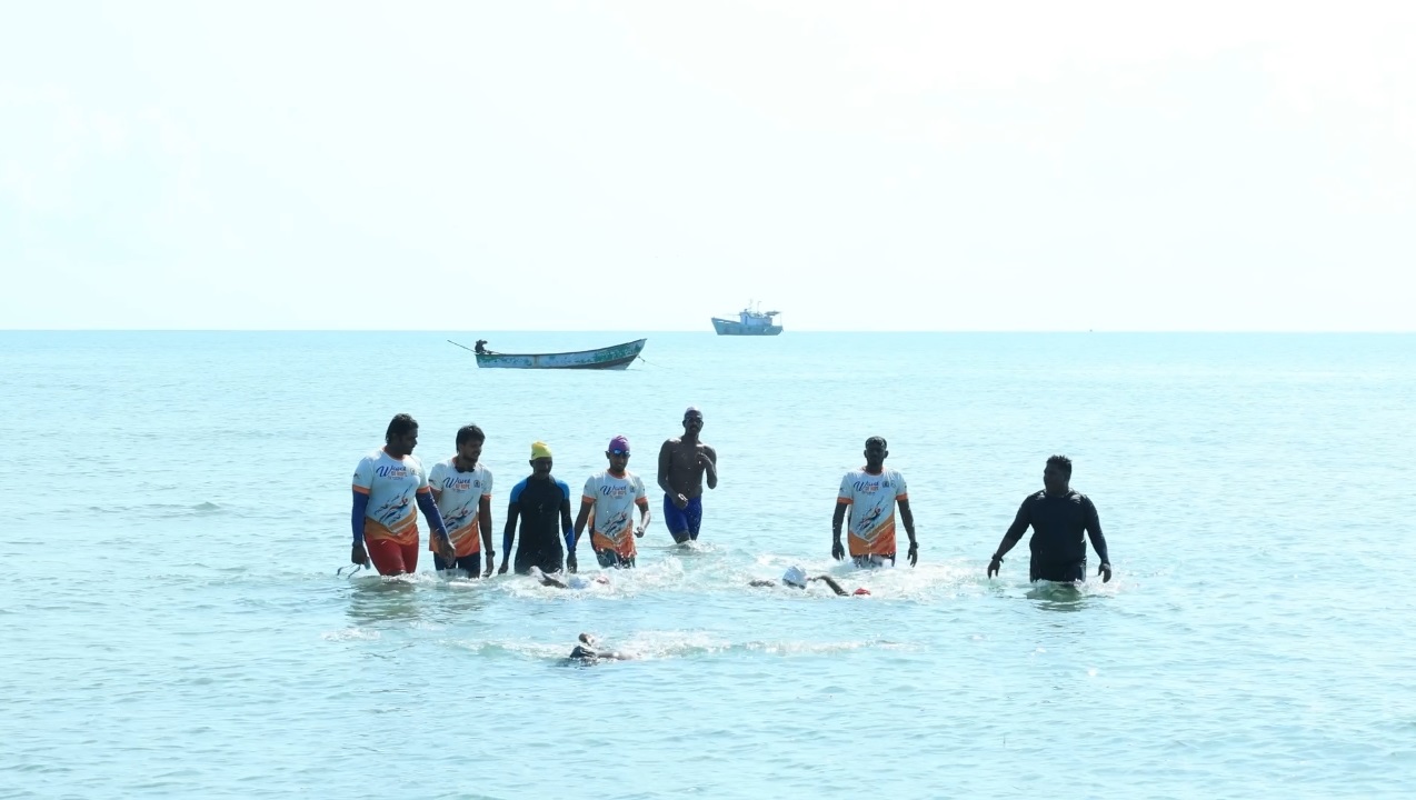 தேவையான அனுமதிகள் பெறப்பட்ட நிலையில், அவர்கள் நேற்று முன்தினம் (18) சனிக்கிழமை பிற்பகல் 03.25 மணியளவில் தனுஷ்கோடி அரிச்சல் முனை கடற்கரையிலிருந்து ரிலே முறையில் நீந்தத் தொடங்கினர். சுமார் 17 கடல் மைல் தூரத்தை 9 மணி 5 நிமிடங்களில் கடந்து, இரவு 12.30 மணியளவில் தலைமன்னாரை அடைந்தனர்.
