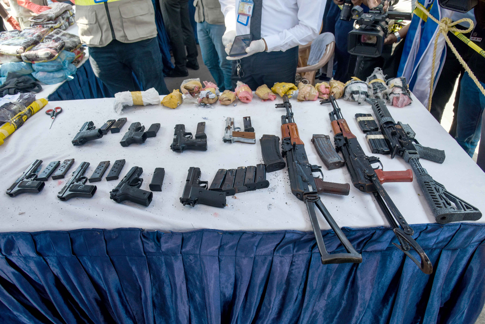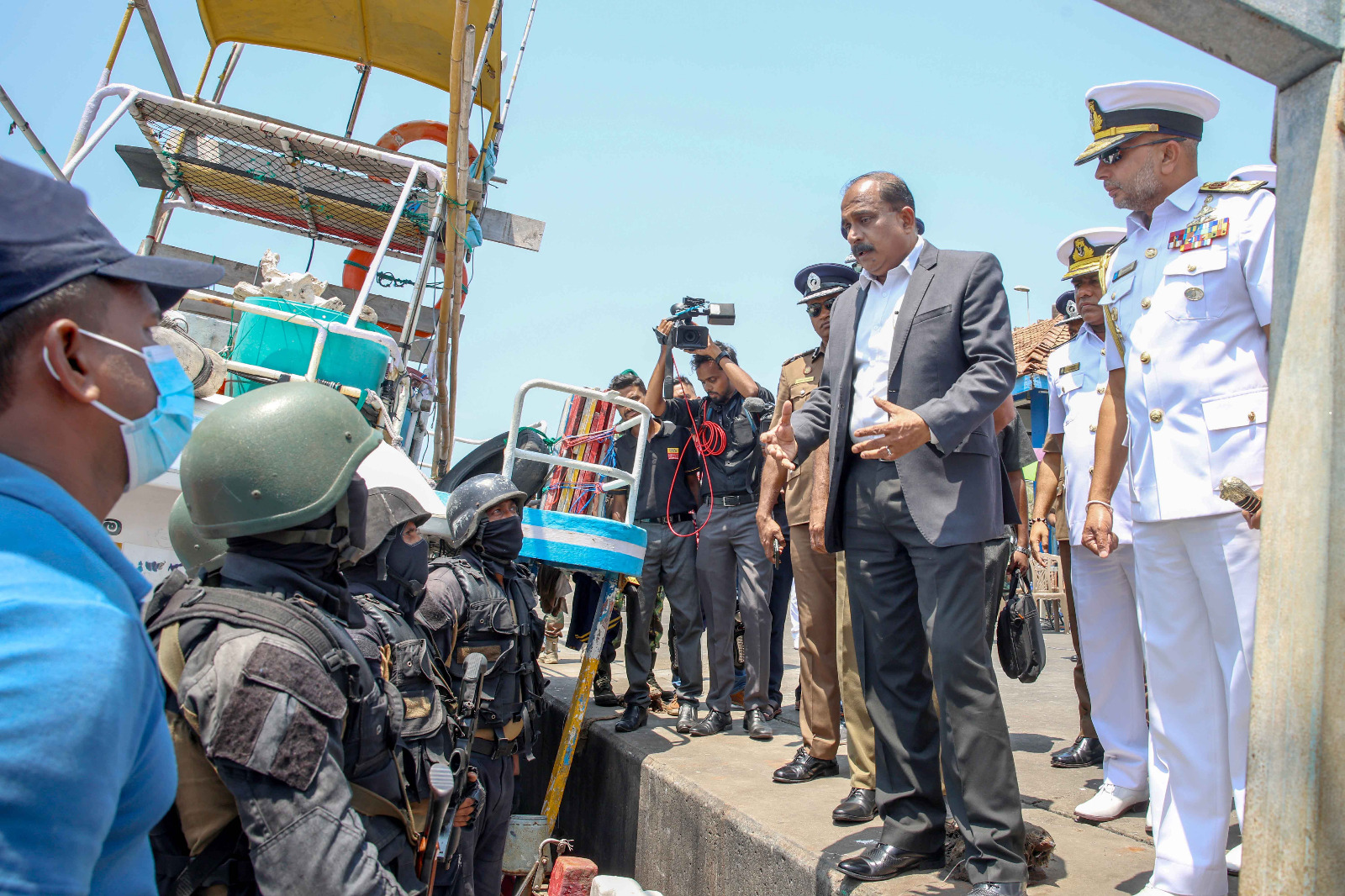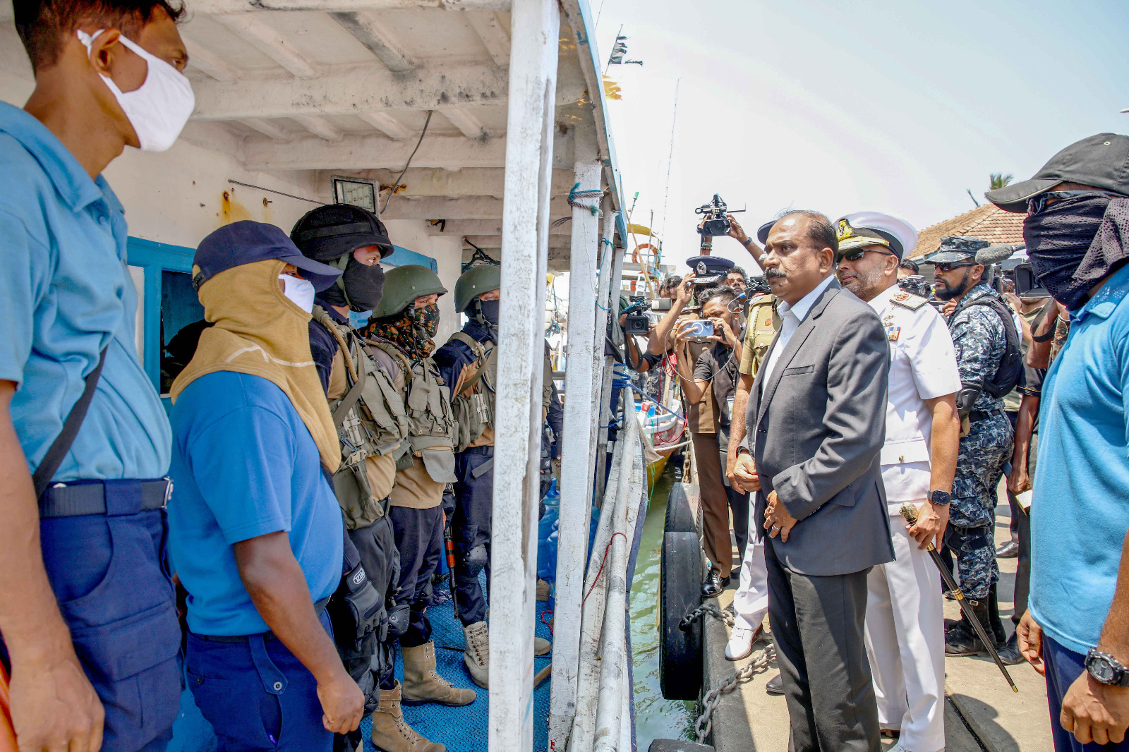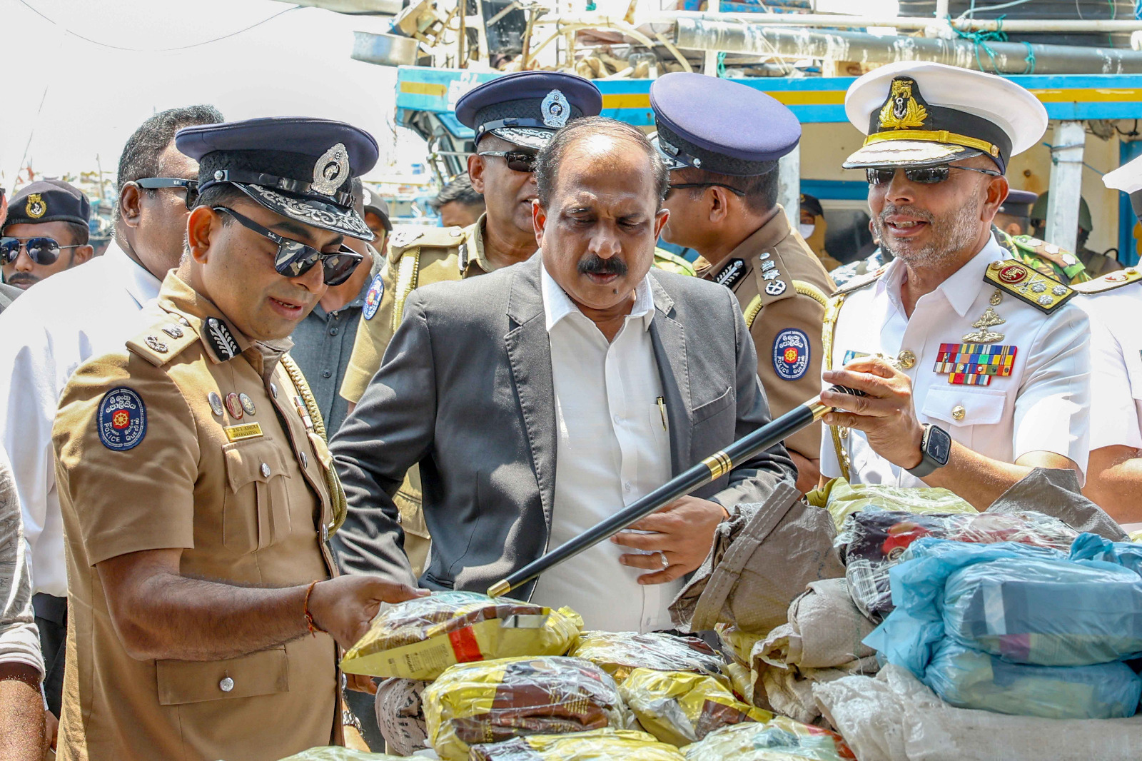 பாதுகாப்பு இராஜாங்க அமைச்சர் மேஜர் ஜெனரல் அருண ஜெயசேகர (ஓய்வு), கடற்படைத் தளபதி வைஸ் அட்மிரல் காஞ்சன பானகொட மற்றும் பொலிஸ் மா அதிபர் பிரியந்த வீரசூரிய ஆகியோர் மீட்கப்பட்ட போதைப்பொருட்கள் மற்றும் ஆயுதங்களை நேரில் பார்வையிட்டு ஆய்வு செய்தனர்.