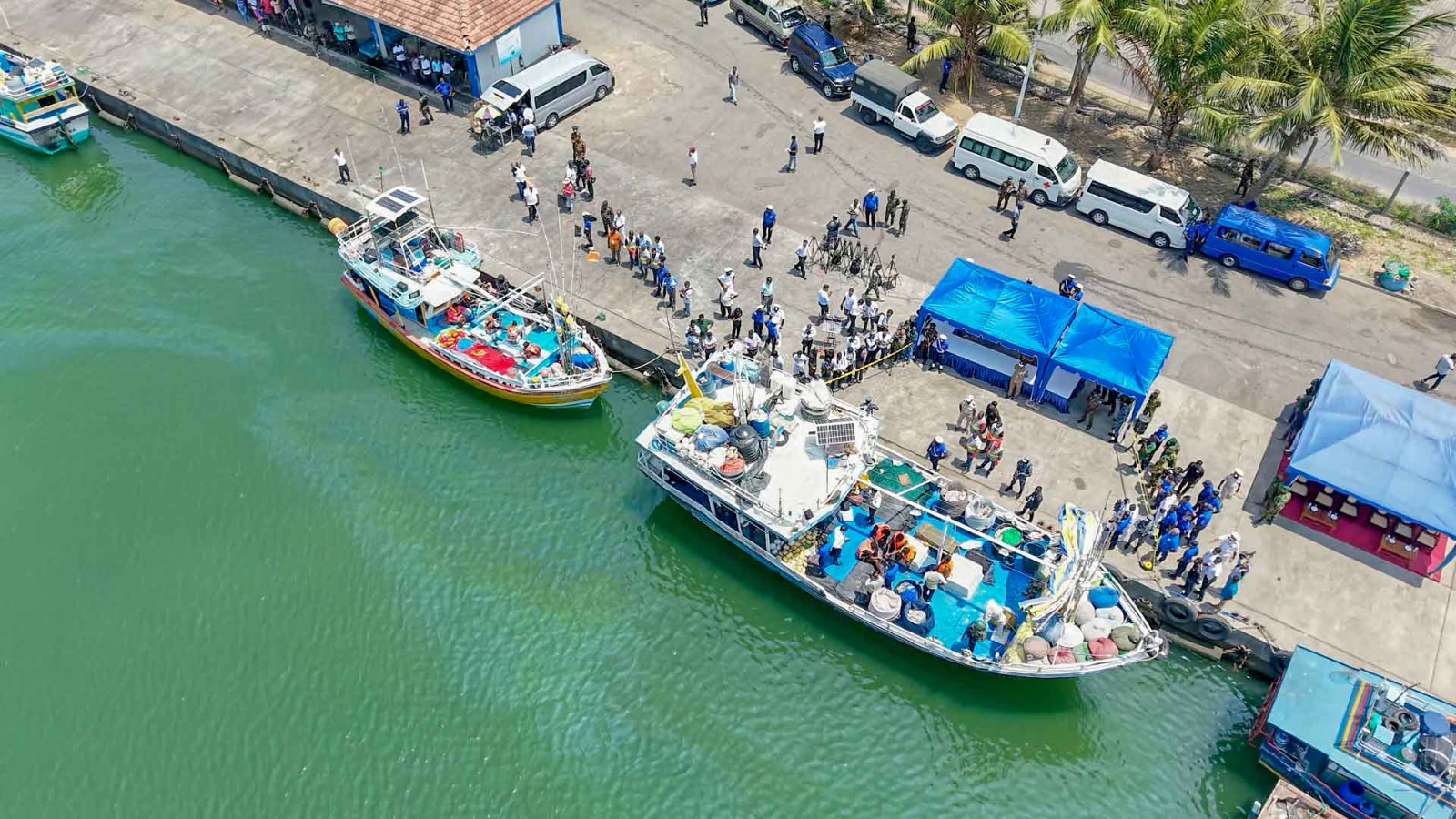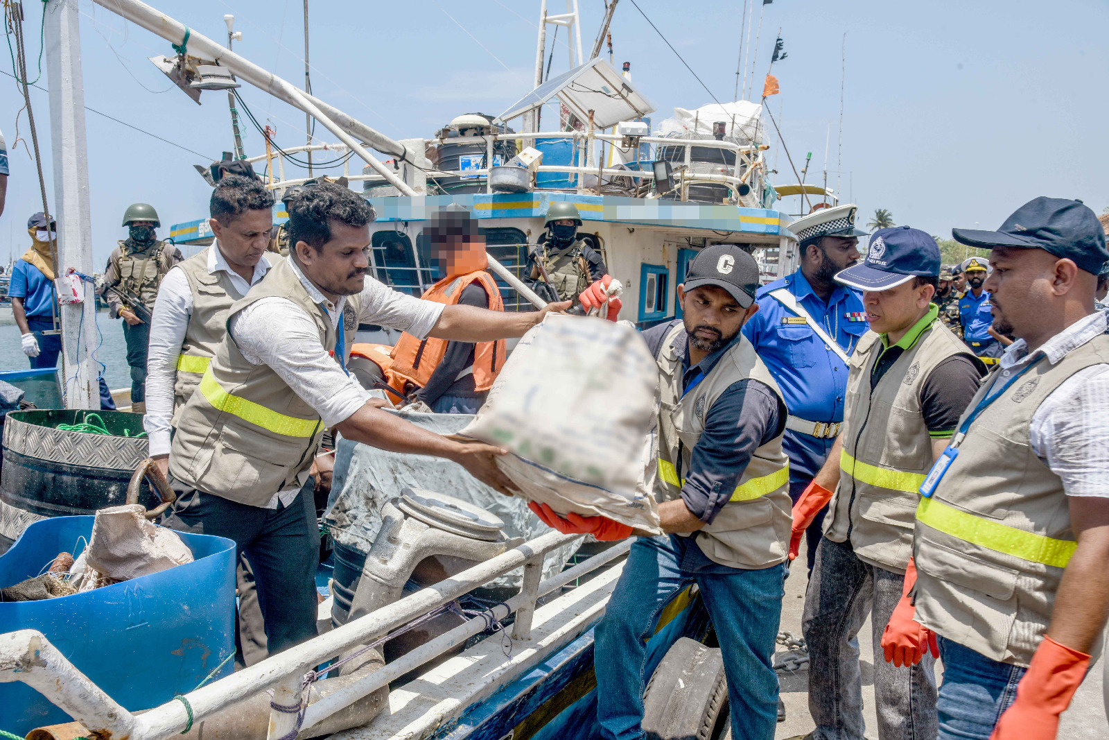 கைப்பற்றப்பட்ட படகுகள் நேற்று வியாழக்கிழமை (12) திக்கோவிட்டை மீன்பிடித் துறைமுகத்திற்குக் கொண்டு வரப்பட்டன. பொலிஸ் போதைப்பொருள் ஒழிப்புப் பிரிவினரின் விரிவான ஆய்வின் போது,478 கிலோகிராமுக்கும் அதிக ‘ஐஸ்’ போதைப்பொருள், 176 கிலோகிராமுக்கும் அதிக ஹெரோயின், 03 இயந்திரத் துப்பாக்கிகள் மற்றும் 08 தொடர்பாடல் சாதனங்கள் எனபன மீட்கப்பட்டமை உறுதி செய்யப்பட்டுள்ளது.