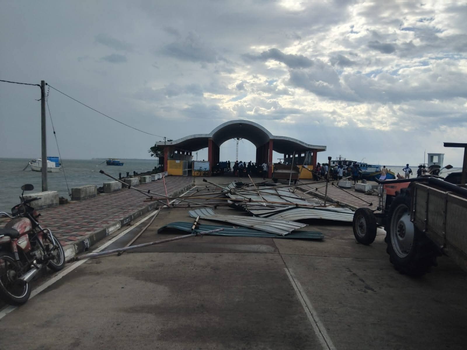 யாழ்.நயினாதீவில் வெள்ளிக்கிழமை (20.03.2026) காலை வீசிய திடீர் மினி சூறாவளியால் நயினாதீவு ஸ்ரீ நாகபூஷணி அம்மன் ஆலயத்துக்கு முன்பாக இறங்குதுறைப் பகுதியில் ஆலயத்தினரால் அமைக்கப்பட்டிருந்த தகரக் கொட்டகை தூக்கி வீசப்பட்டுச் சேதமடைந்துள்ளது. .