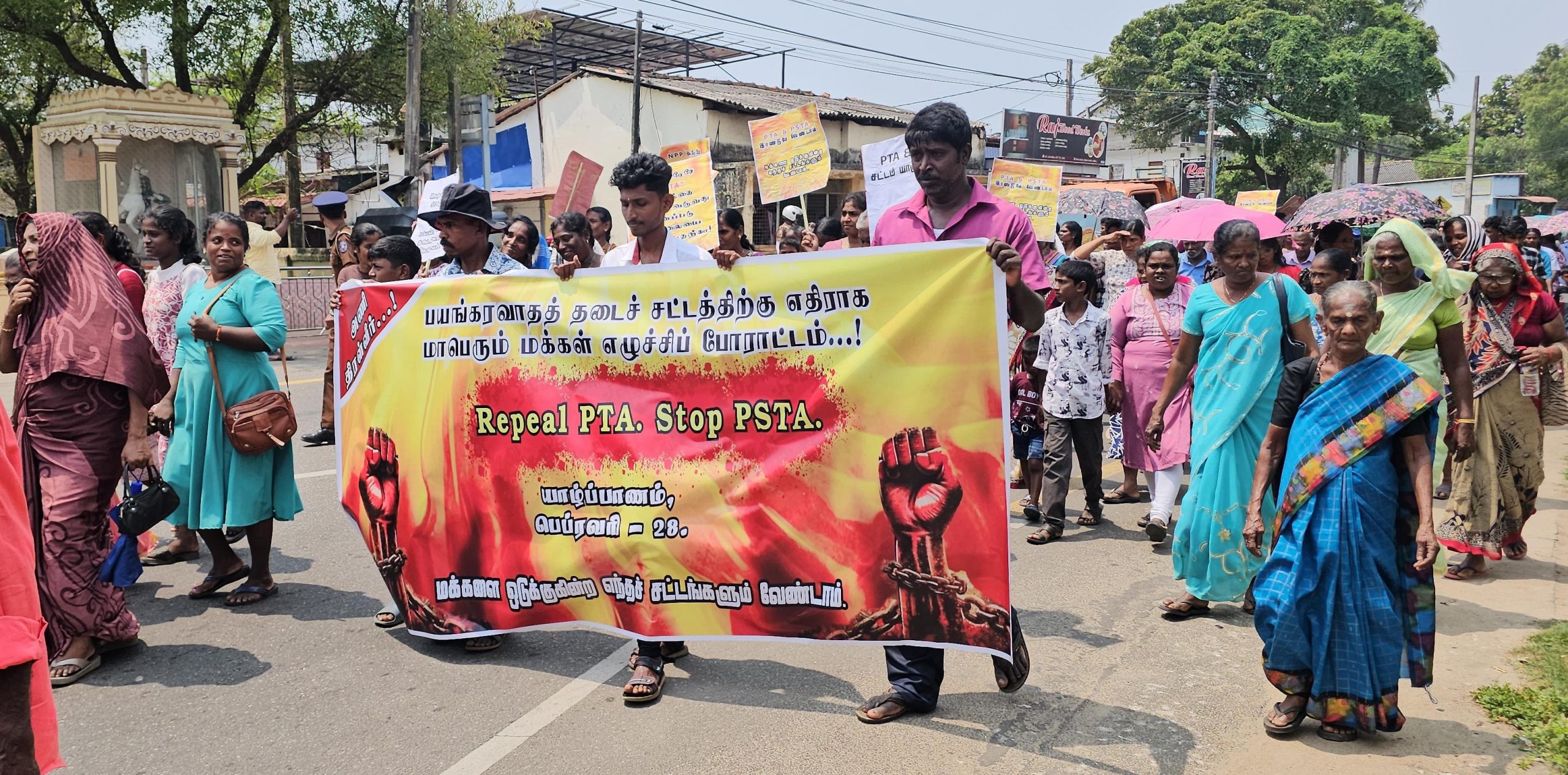 பயங்கரவாதத்திலிருந்து அரசாங்கத்தை பாதுகாக்கும் சட்டத்திற்கு எதிராக சனிக்கிழமை (28) யாழ்ப்பாணத்தில் மாபெரும் கண்டன போராட்டம் ஒன்று முன்னெடுக்கப்பட்டது.