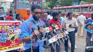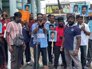சிறிலங்கா இ ராணுவத்தினாரால் கை து செய்யப்பட்டு காணாமல் ஆக்கப்பட்ட, வடமராட்சி – கரவெட்டியை சேர்ந்த ஊடகவியலாளரும் ஆசிரியருமான சுப்பிரமணியம் இராமச்சந்திரன் எங்கே? அனுர அரசே பதில் சொல் என வலியுறுத்தி யாழ் வடமராட்சி ஊடக இல்லத்தின் ஏற்பாட்டில் பருத்தித்துறையில் இன்று (21) பாரிய கவனயீர்ப்பு போராட்டம் முன்னெடுக்கப்பட்டுள்ளது.