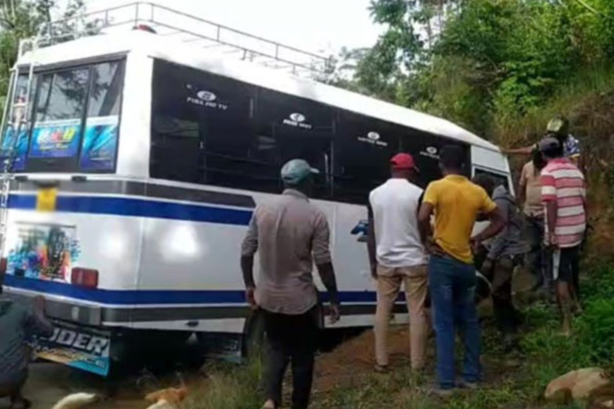 வாகனத்தை நிறுத்தும் முயற்சியில், சாரதி பேருந்தை பிரதான வீதியோரம் இருந்த ஒரு கரையின் மீது திருப்பியுள்ளார்.