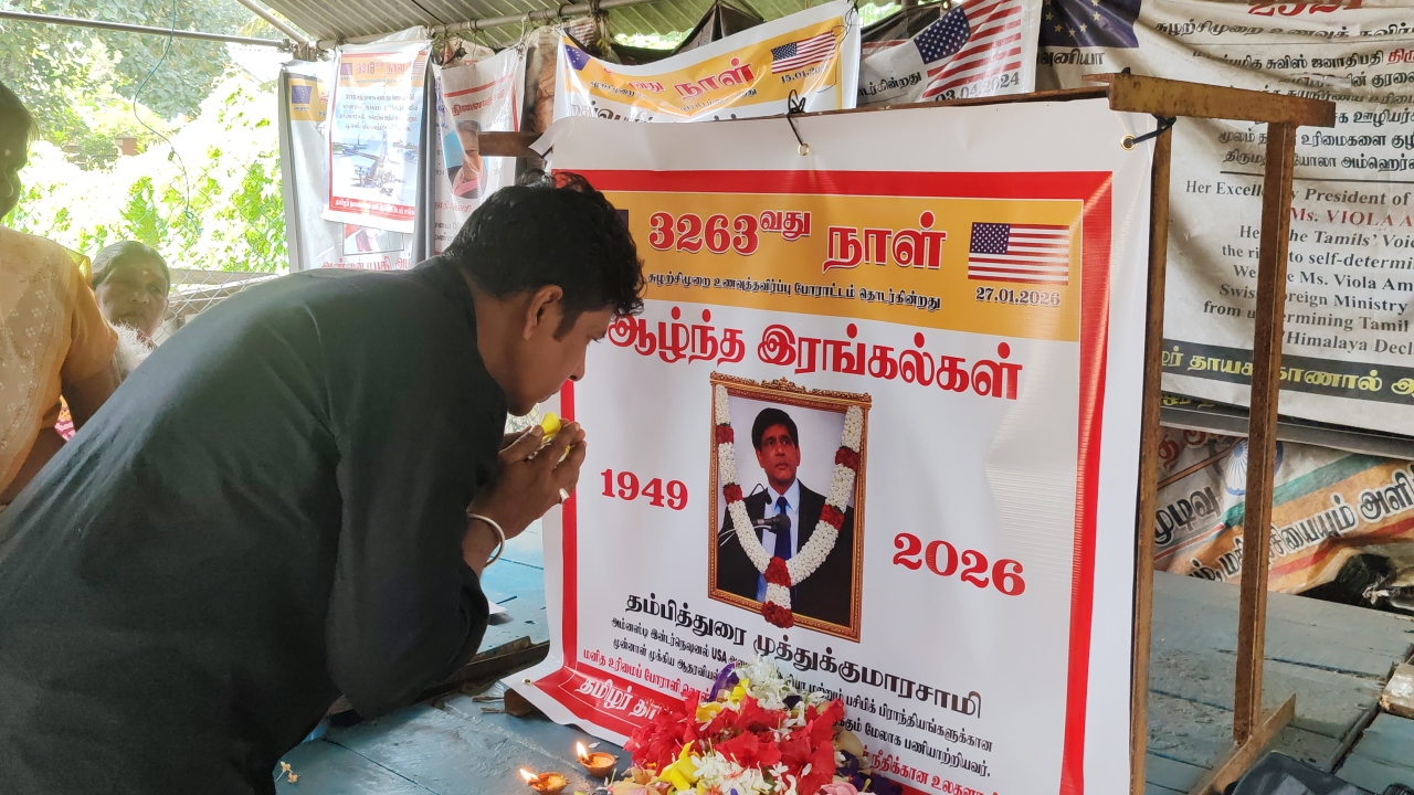 146,000க்கும் மேற்பட்ட தமிழர்கள் கொல்லப்பட்டதற்கும், 30,000க்கும் மேற்பட்டோர் காணாமல் ஆக்கப்பட்டதற்கும் நீதி வேண்டி நாங்கள் இன்றும் அமெரிக்காவையும், ஐரோப்பிய ஒன்றியத்தையும் எதிர்பார்த்து காத்திருக்கிறோம்.