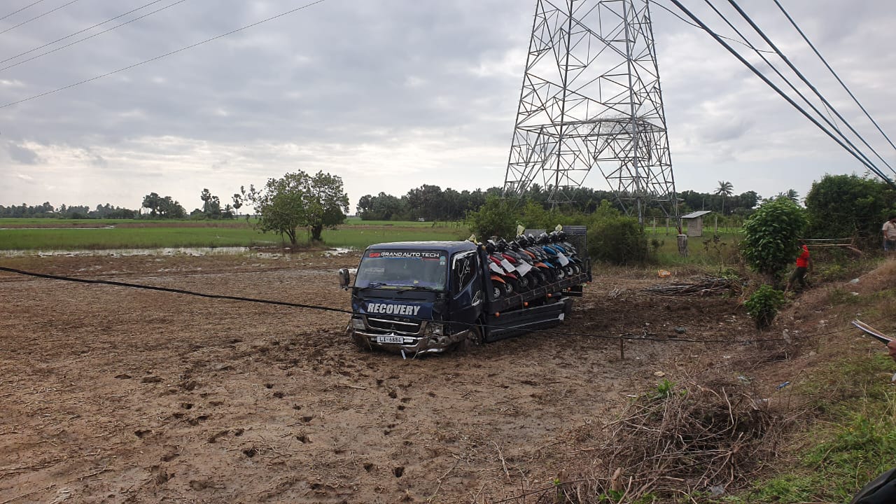 இந்த கன ரக வாகனம் யாழ்ப்பாணம் நகரிலிருந்து பருத்தித்துறைக்கு மோட்டார் சைக்கிள்களை ஏற்றிக்கொண்டு பயணித்தபோதே விபத்தில் சிக்கியுள்ளது.