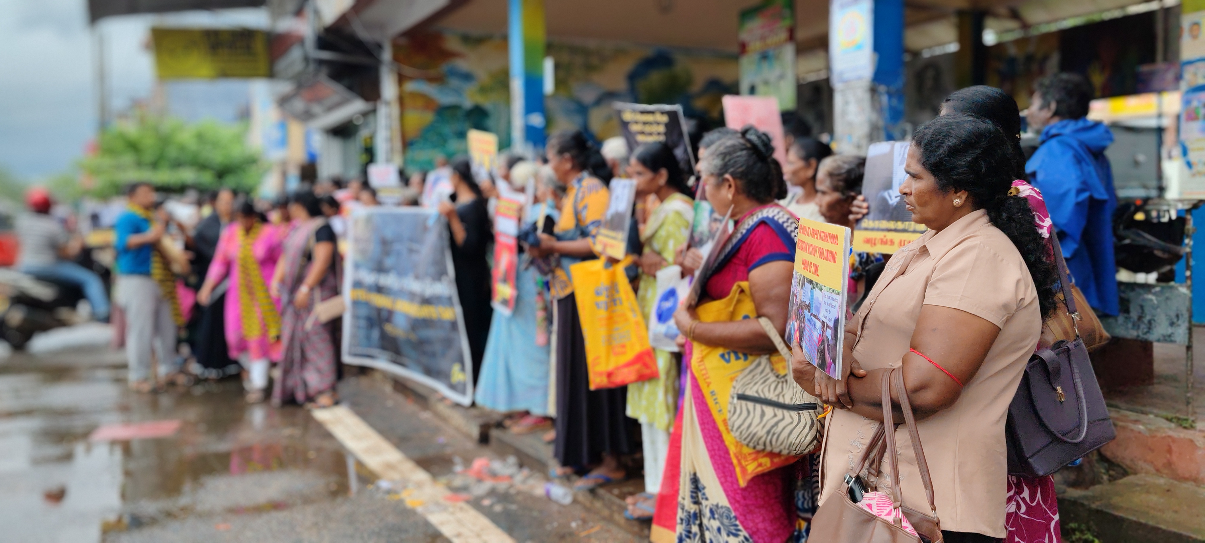 இதன்போது காணாமல் ஆக்கப்பட்டோரின் தாய்மார் தமது காணாமல் ஆக்கப்பட்ட உறவுகளின் புகைப்படங்களை தாங்கியவாறும், நீதி கோரிய பதாதைகளை தாங்கியவாறும் ஆர்ப்பாட்டத்தில் ஈடுபட்டனர்.