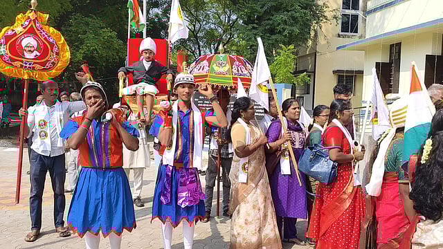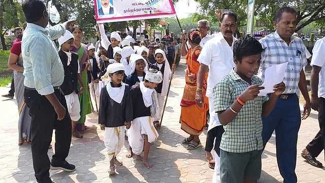 கம்பம் பாரதி தமிழ் இலக்கிய பேரவை சார்பில் பாரதி வேடமணிந்த மாணவியை பல்லக்கில் வைத்து, பாரதியார் பிறந்த இல்லத்தில் இருந்து ஊர்வலமாக மணிமண்டபம் வரை கொண்டு வந்தனர்.