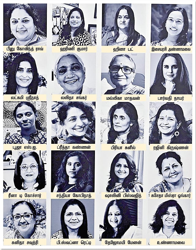 பட்டுத் துணியில் சாயங்களைப் பயன்படுத்தும் பீனு கோவிந்த் ராவ், ‘கியூபிஸ்ட் எக்ஸ்பிரஷனிசம்’ பாணியை வெளிப்படுத்தும் ஹரிணி குமார், மாறிவரும் பருவகாலங்களின் நிறங்களை வித்தியாசப்படுத்திக் காட்டும் ஹினா பட், உணர்ச்சிகள், உள்ளுணர்வுக்கு முக்கியத்துவம் தரும் கனவுலகக் காட்சியை படைக்கும் இசையரசி அண்ணாமலை, பழைய வீடுகள், சிதிலமடைந்த சுவர்களின் வழியே காலத்தின் மாற்றத்தை பதிவு செய்யும் லட்சுமி ஸ்ரீநாத், பார்வையாளரே சிற்பத்தின் ஓர் அங்கமாக மாறி, அதை ஆழமாக உணர்ந்து அனுபவிக்கும் படைப்பை உருவாக்கிய லலிதா சங்கர், ‘வார்ப்டு ஃபேன்டஸி’ ஓவியம்படைத்த மல்லிகா மாதவன், அலைகள், நீரோட்டங்களை காலத்தின் வெளிப்பாடாக சித்தரித்த பார்வதி நாயர், பார்வையாளர்களை ஆழ்ந்து சிந்திக்க வைக்கும் அடுக்குகளாக ஓவியத்தைப் படைத்த பூஜா எஸ்.ஐ., சுற்றுச்சூழல் பாதுகாப்பை உணர்த்தும் ப்ரீத்தா கண்ணன், அன்றாட வாழ்க்கை அனுபவங்களை எக்ஸ்பிரஷனிச நிறங்கள் மூலம் வெளிப்படுத்தும் பிரியா சுனீல், கனவுக்கும், எதார்த்தத்துக்கும் இடையிலான கற்பனை வெளிகளை ஆராயும் ரஜினி கிருஷ்ணன், மனித மனதின் நுணுக்கங்களை விளக்கும் ரீனா டி கோச்சார், காலத்தின் நிலையற்ற தன்மையை தியானம்போல காட்சிப்படுத்தும் சந்தியா கோபிநாத், மன அமைதி, உள்நிலை விழிப்புணர்வைத் தேடும் பயணத்தைக் காட்டும் ஷாலினி பிஸ்வஜித், இயற்கைக்கும், பாரம்பரியத்துக்குமான உரையாடல் போன்ற ஓவியத்தைப் படைத்த சுசேதா மிஸ்ரா ஓங்கார், கடலில் நிலம் கரைவது போன்ற தொடர் ஓட்டத்தை காட்சிப்படுத்தும் சுனிதா சவுத்ரி, இந்திய மினியேச்சர் ஓவிய மரபின் செழுமை, அமைதியை பிரதிபலிக்கும் படைப்பைத் தந்துள்ள பி.ஸ்வப்னா ரெட்டி, அண்டவெளியின் மர்மங்களை மனித அனுபவத்தோடு பிணைத்துக் காட்டும் தேஜோமயி மேனன், வாழ்வின் மூலத்தை நோக்கிய உள்முகப் பயணத்தை சித்தரிக்கும் உண்ணாமலை அண்ணாமலை.