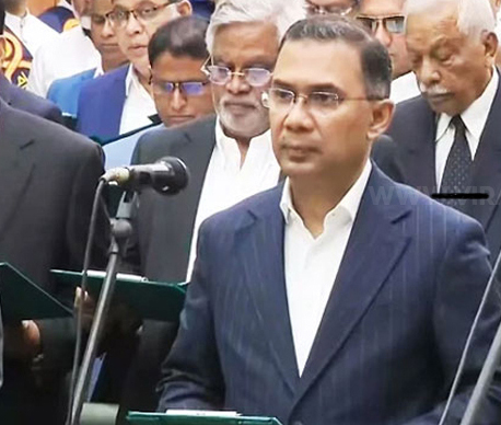 கடந்த 12 ஆம் திகதி நடைபெற்ற பாராளுமன்றத் தேர்தலை தொடர்ந்து பங்களாதேஷ் பிரதமராக தெரிவு செய்யப்பட்ட  தேசியவாத கட்சியின் தலைவர்  தாரிக் ரஹ்மான் மற்றும் அவரது கட்சியைச் சேர்ந்த பாராளுமன்ற உறுப்பினர்கள் இன்று செவ்வாய்க்கிழமை (17) காலை பதவியேற்றனர்.