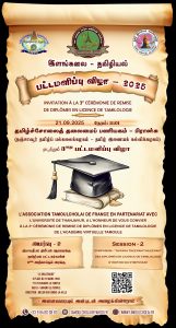 2025 ஆம் ஆண்டில் பிரான்ஸ் தமிழ்ச்சோலைத் தலைமைப் பணியகம் ஏற்பாடு செய்த மூன்றாவது இளங்கலைத் தமிழியல் பட்டமளிப்பு விழா 2025 செப்டம்பர் 21 ஆம் திகதி நடைபெற உள்ளது.