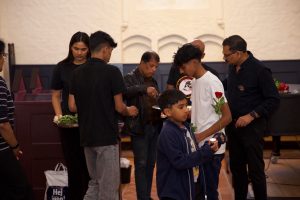 அருட்தந்தை Steen F. Søvndalk அவர்களினால் தோத்திரப் பாடல்கள் பாடப்பட்டு திருப்பலி கொடுக்கப்பட்டதைத் தொடர்ந்து, விசேடமாக தேவலாயத்தில் வைக்கப்பட்டிருந்த முள்ளிவாய்க்கால் நினைவுத் தூபிக்கு அருட்தந்தை அவர்கள் முதன்மைச் சுடர் ஏற்றி மலர் வணக்கம் செலுத்தினார்.