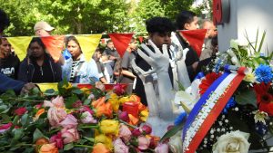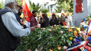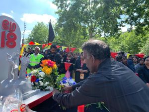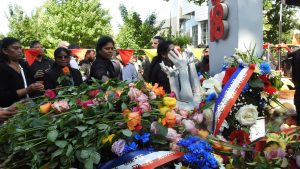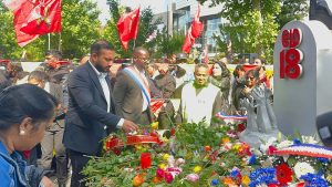 Place de la Bastille பகுதியில் அமைக்கப்பட்டிருந்த முள்ளிவாய்க்கால் நினைவுத்தூபி முன்பாக பொதுச் சுடரினை பிரான்சு தமிழர் ஒருங்கிணைப்புக் குழுவின் செயற்பாட்டாளர் திரு.சிறி அவர்கள் ஏற்றிவைக்க, ஈகைச் சுடரினை முள்ளிவாய்க்கால் மண்ணில் 07.05.2009 இல் சாவடைந்த பிரசாந்தி அவர்களின் மகள் ஏற்றிவைக்க, முள்ளிவாய்க்கால் மண்ணில் உறவுகளை இழந்த மற்றொரு குடும்ப உறுப்பினர் மலர்வணக்கம் செலுத்தினார்.