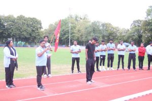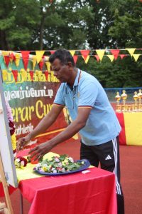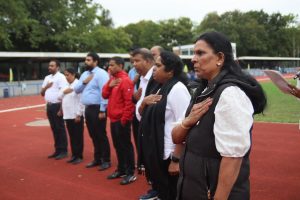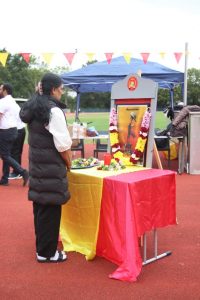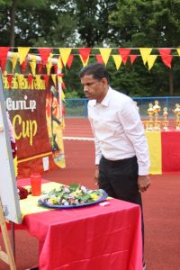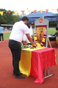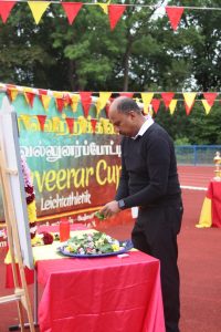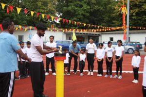 அவர்கள் பொதுச்சுடரினை ஏற்றிவைக்க, தமிழர் விளையாட்டுக் கூட்டமைப்பின் பொறுப்பாளர் திரு. தர்மலிங்கம் இராஜகுமாரன் அவர்கள் யேர்மனிய நாட்டுத் தேசியக்கொடியினையும், தமிழர் ஒருங்கிணைப்புக் குழு யேர்மனியின் வடமாநிலம் 2 இன்பொறுப்பாளர் திரு. இளையதம்பி துரைஐயா அவர்கள் தமிழீழத் தேசியக்கொடியினையும், தமிழ்க் கல்விக் கழகம் யேர்மனியின் விளையாட்டுத்துறைப் பொறுப்பாளர் திருமதி ஞானச்செல்வி திருபாலசிங்கம் அவர்கள் தமிழ்க் கல்விக் கழகக் கொடியினையும் ஏற்றிய பின்னர் அகவணக்கத்தோடு விளையாட்டுப் போட்டிகள் ஆரம்பமாகியது.