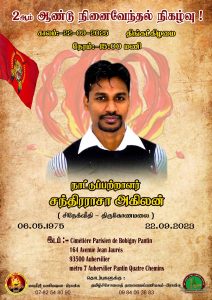 நாட்டுப்பற்றாளர் சந்திரராசா அகிலன் அவர்களின் 2 ஆம் ஆண்டு வணக்க நிகழ்வு!
