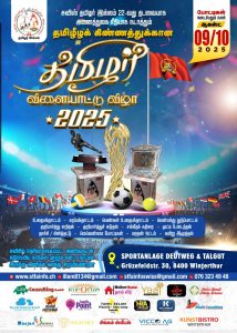 சுவிஸ் தமிழர் இல்லம் 22 ஆவது தடவையாக அனைத்துலக ரீதியில் மிகப் பிரமாண்டமாக நடத்திய தமிழீழக்கிண்ணத்துக்கான தமிழர் விளையாட்டு விழா இம்மாதம் 09ஆம் 10ஆம் திகதிகளில் ( சனி, ஞாயிறு) நடைபெற்றது. சூரிச் மாநிலம்