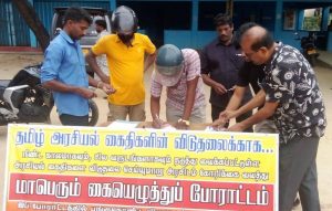 நீண்ட காலமாகவும், சில வருடங்களாகவும் சிறைகளில் தடுத்து வைக்கப்பட்டுள்ள அரசியல் கைதிகளை விடுதலை செய்யுமாறு அரசிடம் கோரிக்கை விடுத்துப் போராளிகள் நலன்புரிச் சங்கத்தின் ஏற்பாட்டில் கையெழுத்துச் சேகரிப்புப் போராட்டம் சனிக்கிழமை (18.01.2025) யாழ்.வடமராட்சியின் சில பகுதிகளில் நடாத்தப்பட்டது.