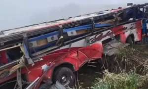 ஈக்வடாரில் உள்ள குவாரந்தா-அம்பாடோ இடையிலான சாலையில் பயணிகளுடன் பேருந்து சென்று கொண்டிருந்தது. சிமியாடுக் பகுதியில் மலைப் பாதையில் பயணித்தபோது டிரைவரின் கட்டுப்பாட்டை இழந்த பேருந்து பள்ளத்தில் கவிழ்ந்து