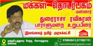 வன்னிமாவட்ட நாடாளுமன்ற உறுப்பினர் துரைராசா ரவிகரன் அவர்களின் மக்கள் தொடர்பகமொன்று நேற்று ஞாயிற்றுக்கிழமை (26) முல்லைத்தீவு – புதுக்குடியிருப்புப் பகுதியில் திறந்துவைக்கப்பட்டுள்ளது. புதுக்குடியிருப்பு நகருக்கு அருகாமையில், புதுக்குடியிருப்பு