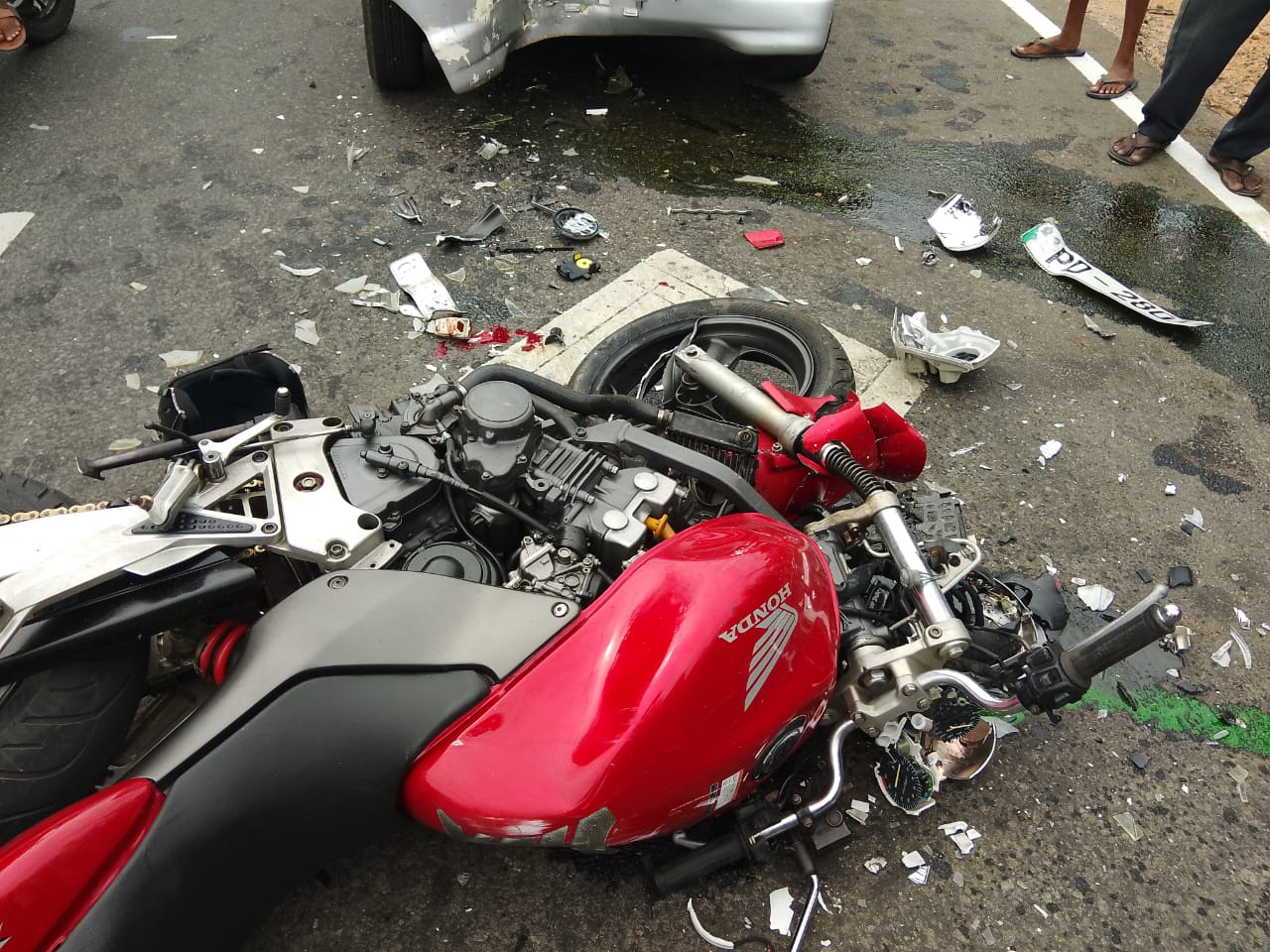 குறித்த விபத்திற்கு சற்று முன்னர் கடல்முக வீதியில் இருந்து திருஞானசம்பந்தர் வீதியை அடைந்த இன்னுமொரு மோட்டார் சைக்கிள் குறித்த மோட்டார் சைக்கிள் மோதிய பின்னர் மினி வேனுடன் மோதியுள்ளதாக தெரிவிக்கப்படுகின்றது.