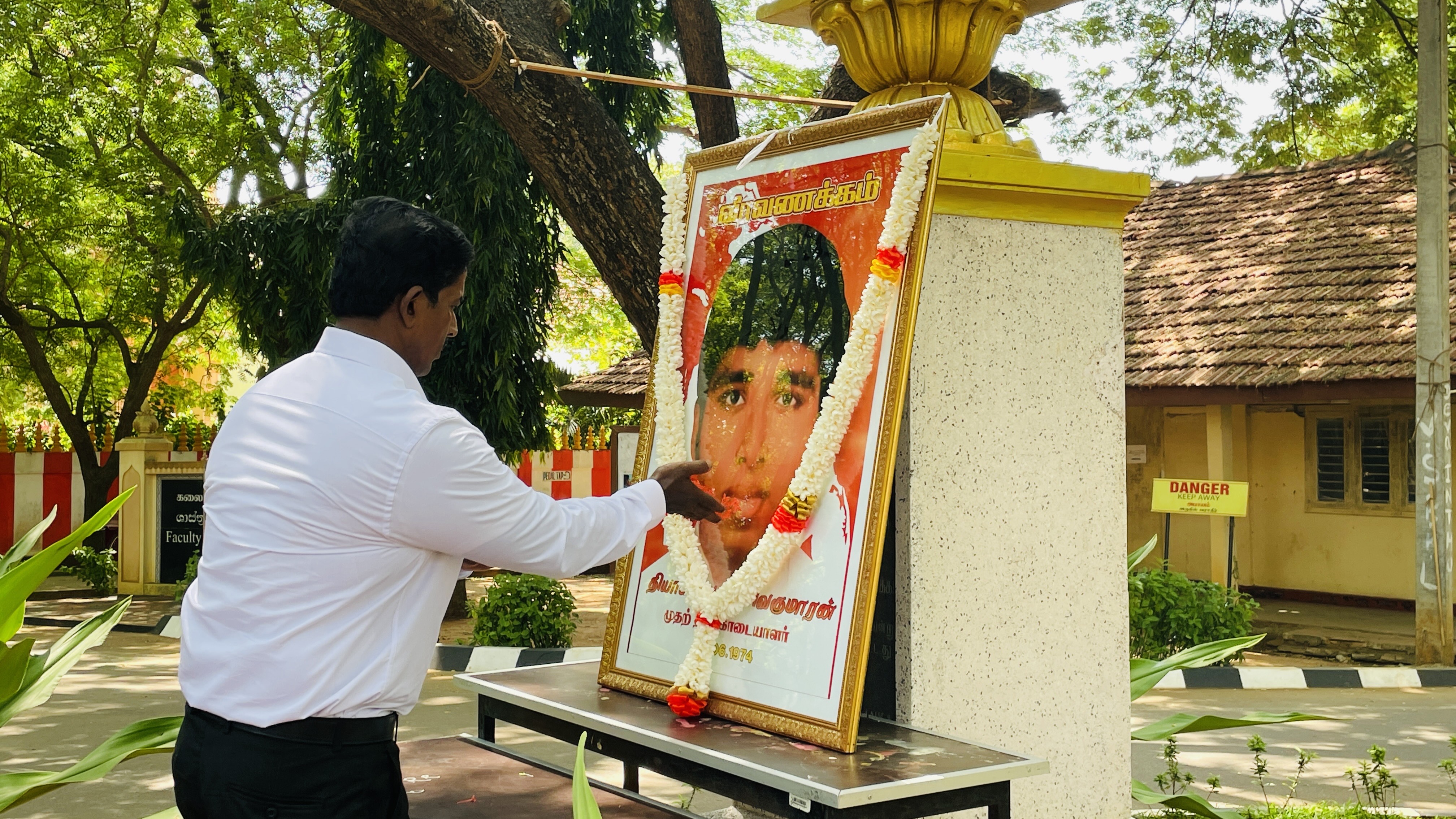 யாழ். பல்கலைக்கழக வளாகத்தில் இன்றைய தினம் வியாழக்கிழமை (5) பகல் நடைபெற்ற இந்த நிகழ்வில், பொன் சிவகுமாரனின் திருவுருவப் படத்துக்கு மாணவர்கள் மாலை அணிவித்து மலரஞ்சலி செலுத்தினர்.