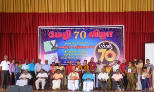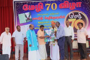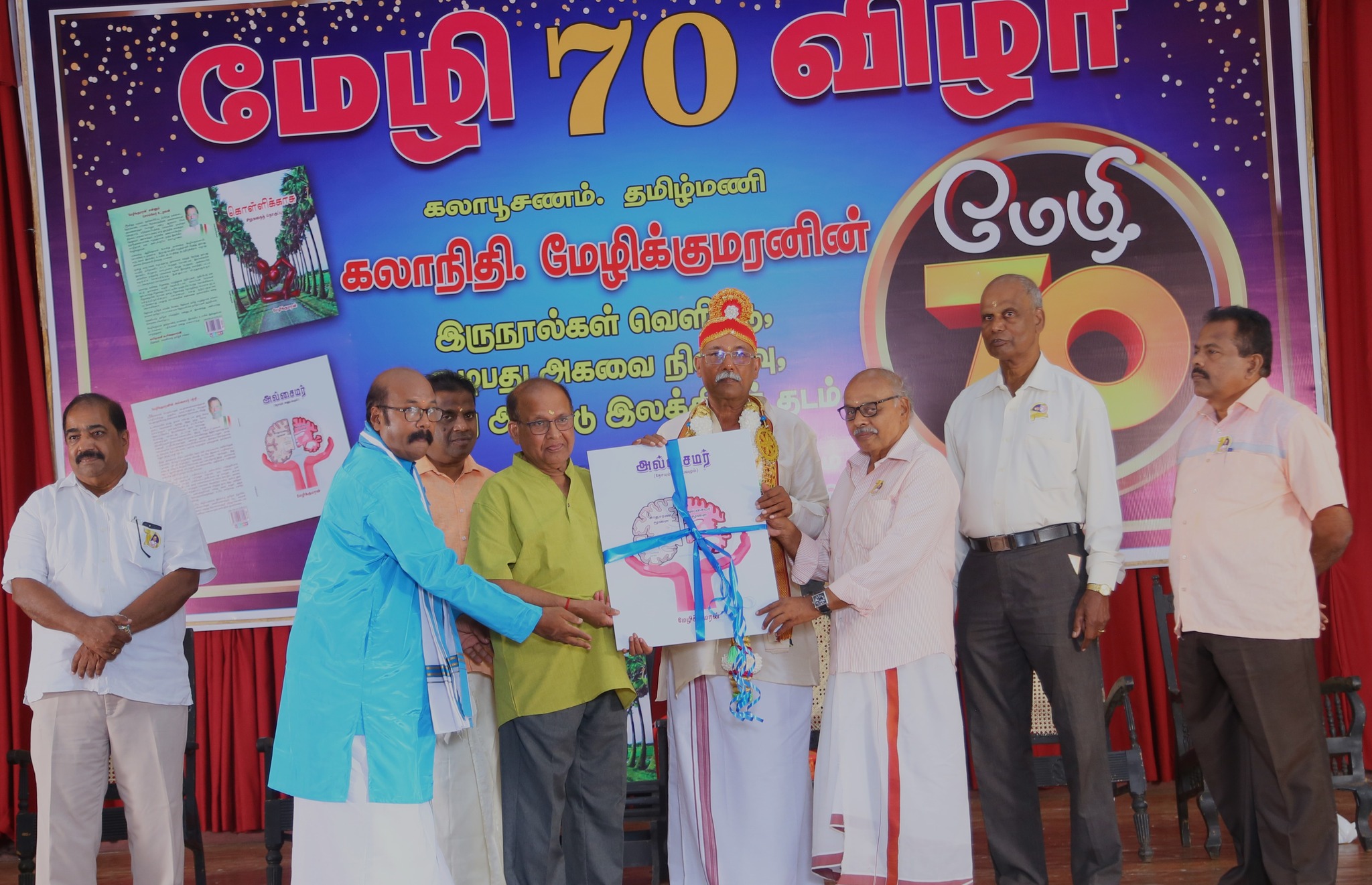 எழுத்தாளர் கலாநிதி மேழிக் குமரனின் எழுபது அகவையையும் ஐம்பதாண்டு இலக்கிய பயணத்தையும் முன்னிட்டு இரு நூல்கள் வெளியீட்டு நிகழ்வு (25.02.2024) காலை 9 மணிக்கு வவுனியா நகரசபை கலாச்சார மண்டபத்தில் பிரமாண்டமாக நடைபெற்றது.